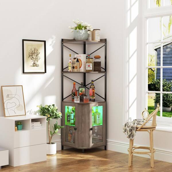 5-Tier Wood Pantry Organizer with Adjustable Shelf and RGB LED Light in Gray