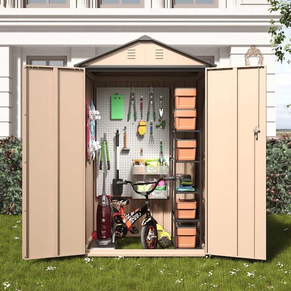 6 ft. x 4 ft. x 3 ft Antique Yellow and Gray Outdoor Lockable Storage Metal Shed, Lean-to Shed with Door for Bike, Tools