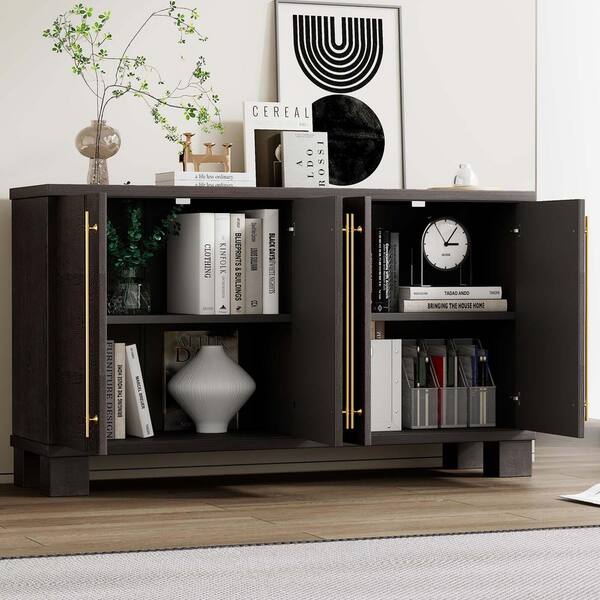 60 in. Wood Pantry Organizer with Adjustable Shelves and Gold Handles in Taupe