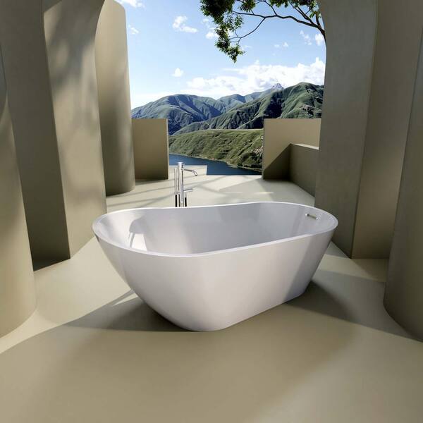 63 in. x 31.5 in. Acrylic Flatbottom Non-Whirlpool Bathtub in White Classic Oval Shape Soaking Tub with Chrome Overflow