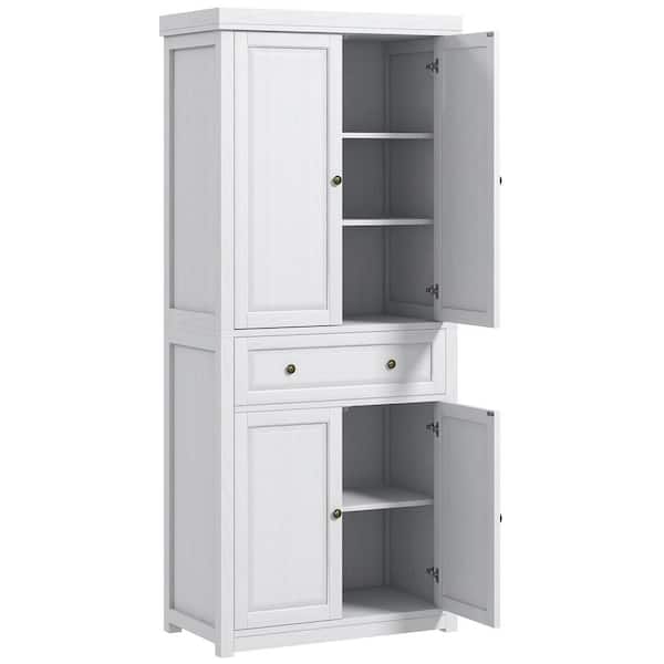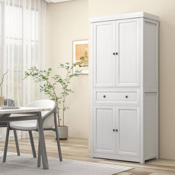 72.5 in. Wood Pantry Organizer with 4 Doors, Drawer and Adjustable Shelves in Distressed White