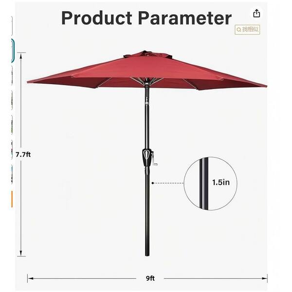 9 ft. Outdoor Market Patio Umbrella for Garden, Deck, Backyard and Pool in Red