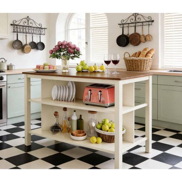 Black Wood 45 in. Stationary Kitchen Island with 2-Open Shelves