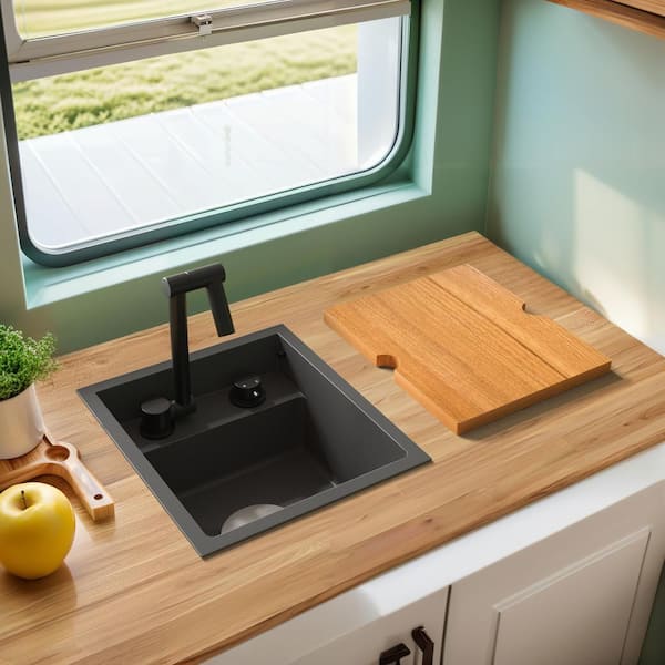 Single Bowl 16-Gauge Matte Black Stainless Steel 15 in. Undermount Hidden Utility Kitchen Bar Sink with Folding Faucet