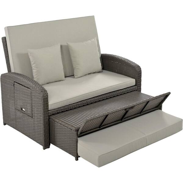 TOPMAX 2-Person Wicker Double Outdoor Chaise Lounge with Gray Cushions