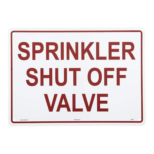 14 in. x 10 in. Sprinkler Shut Off Valve Sign Printed on More Durable, Thicker, Longer Lasting Styrene Plastic