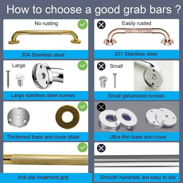 16 in. L x 2.28 in. W Concealed Screw Bathroom Grab Bar Stainless Steel with Safety Anti-Slip for Senior in Gold 2-Pack