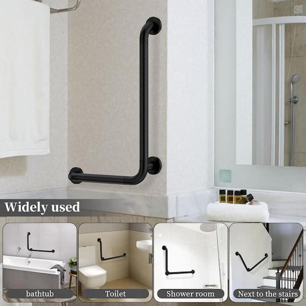 29.1 in. L-Shaped Wall-Mounted Shower Handle Angled Grab Bar with Anti-Slip Grip for or Elderly, Handicap in Matte Black