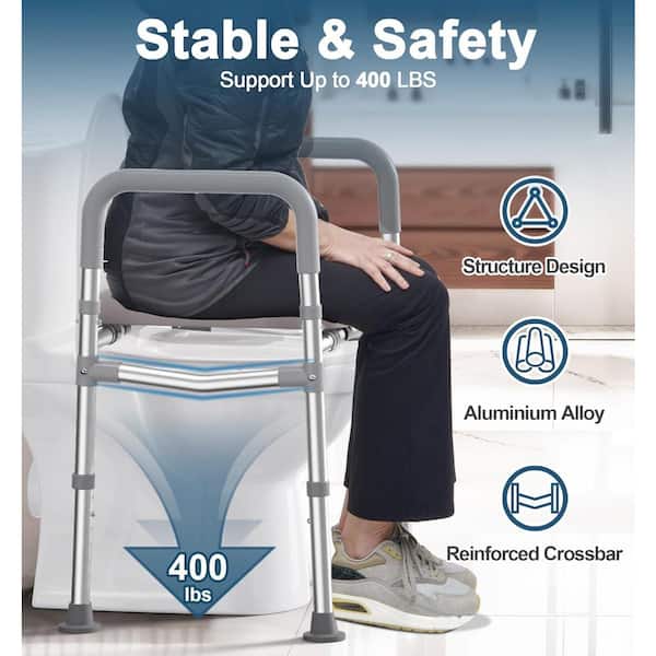 33 in. Max Adjustable Height and Width Raised Toilet Seat with Handles for Elderly, Pregnant in Gray