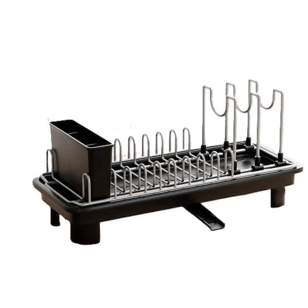 Black Compact Dish Rack with Adjustable Slots, Space-Saving Kitchen Counter Drying Rack for Small Spaces