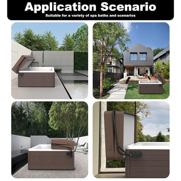 Heavy Duty Spa and Hot Tub Cover Lift Removal System Top Mount Cover Lift Fits Most Spa Hot Tubs Rectangular Brown