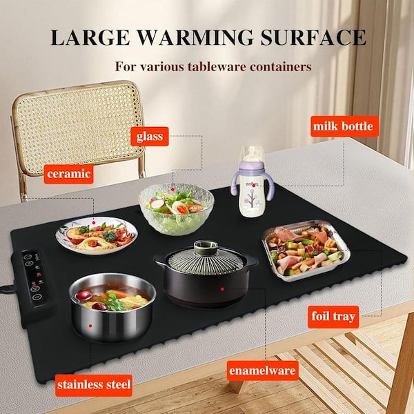 Rollable Silicone Rapid Heating Mat Electric Warming Tray Food Warmers in Black for Buffet, Gatherings with 3-Crocks