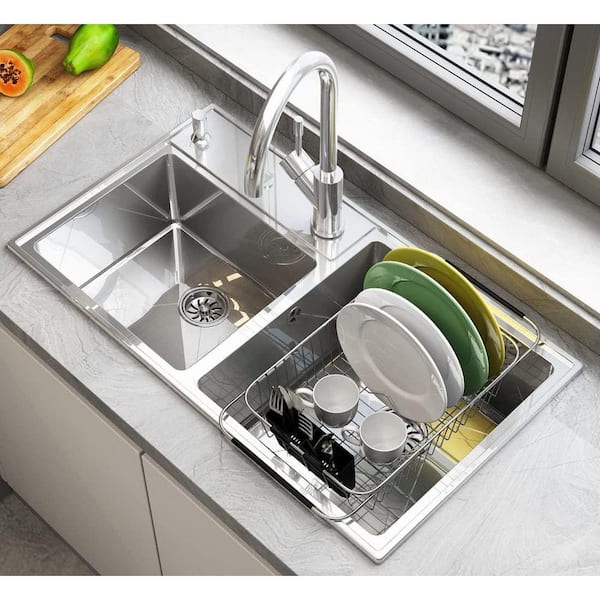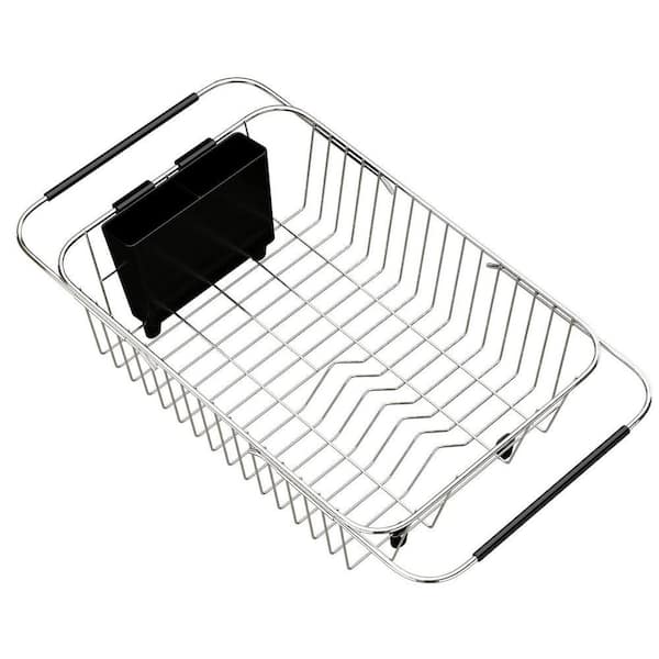 Stainless Steel Adjustable Over Sink Dish Rack with Non-Slip Extendable Arms, Rustproof Finish