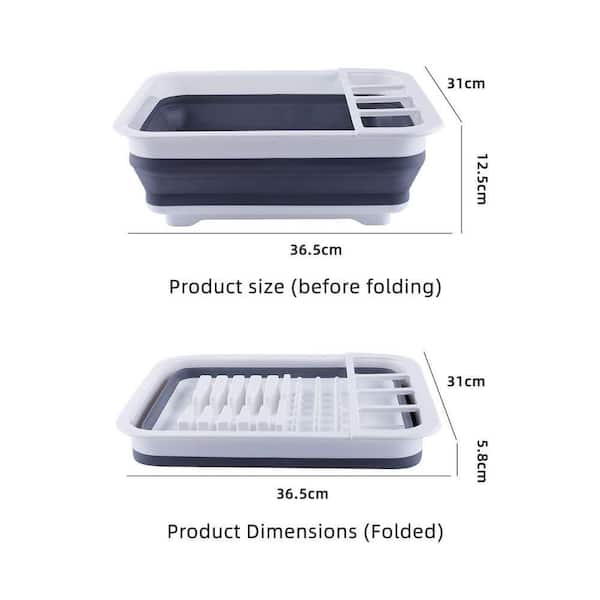 White Collapsible Dish Rack with Built-in Utensil Drying Rack for Kitchen Counter Space Saving Storage