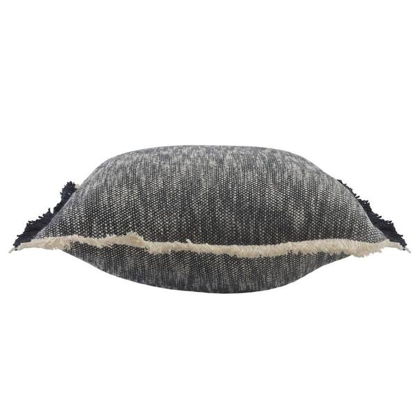 Lyra Dark Blue / White Fringed Solid Cozy Poly Fill 20 in. x 20 in. Indoor Throw Pillow