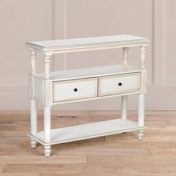 Lyting 39.4 in. White Rectangle Wood Console Table with 2-Drawers