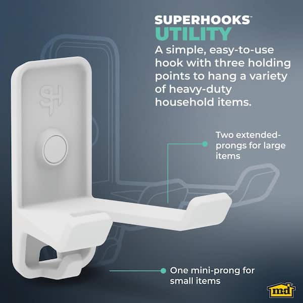 (2-Pack) Superhooks 1.81 in. White 22 lb. Load Capacity Utility Hook with Multiple Fasteners
