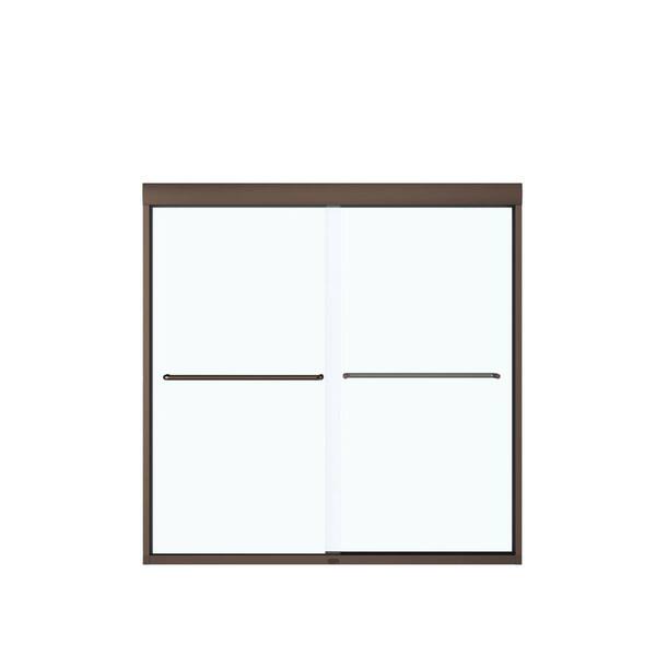 Aura 55 in. x 57 in. Semi-Frameless Sliding Tub Door in Dark Bronze