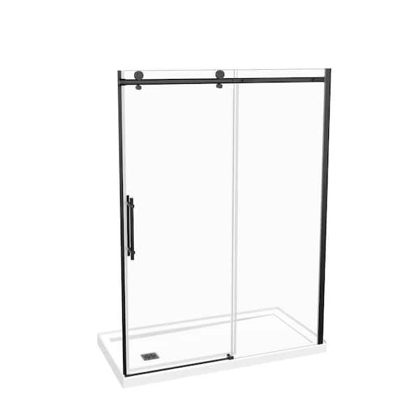 Odyssey 60 in. x 32 in. x 78 in. Alcove Shower Kit with Sliding Frameless Shower Door in Black, Left Drain Shower Pan