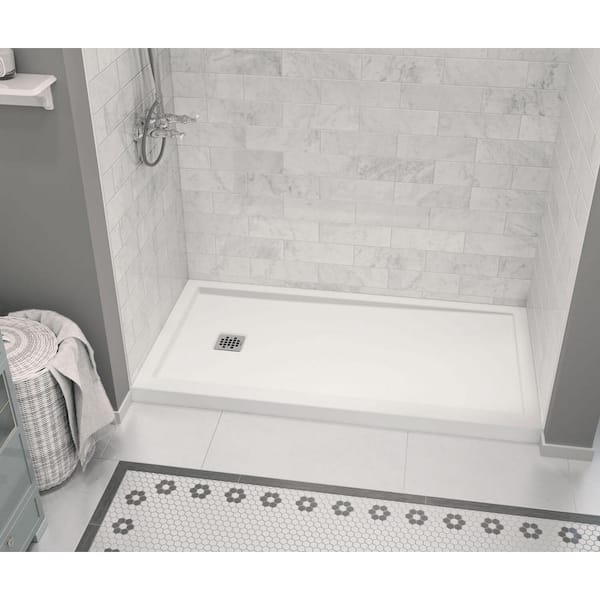 Zone Square 32 in. x 60 in. Double Threshold Shower Base Left Hand Drain in White
