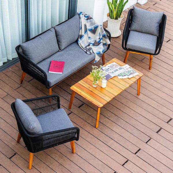 Mieres 4-Piece Wicker Patio Conversation Set with Gray Cushions