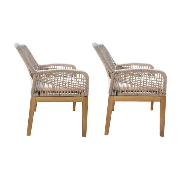 Ottawa Beige Arm Wood Rope Outdoor Dining Chair with Beige Cushion (2-Pack)
