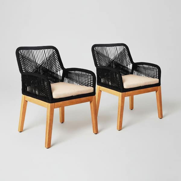Ottawa Black Arm Wood Outdoor Dining Chair with Cream Cushion (2-Pack)