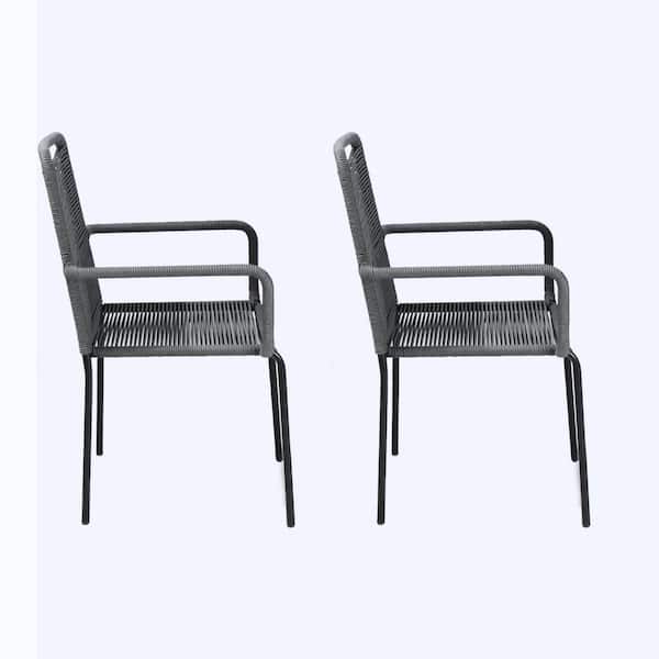 Palaio 2-Piece Stackable Gray Wicker Outdoor Dining Chair