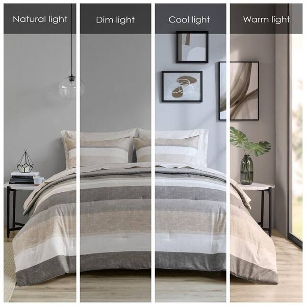 Deacon Taupe/Grey Polyester Cal King Stripe Comforter Set
