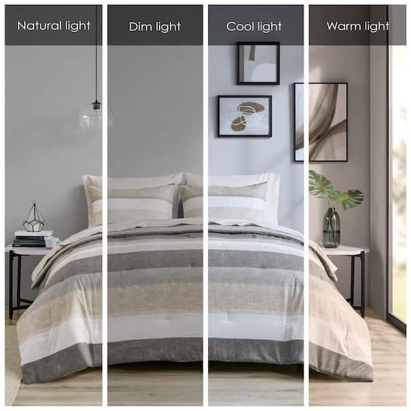 Deacon Taupe/Grey Polyester Full Stripe Comforter Set
