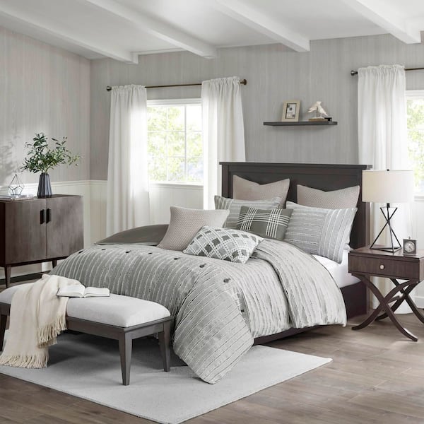 Essence Gray Cotton King Jacquard Comforter Set
