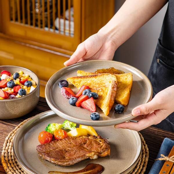 12-Piece Brown Stoneware Dinnerware Set Bowls and Plates Set Service for 4