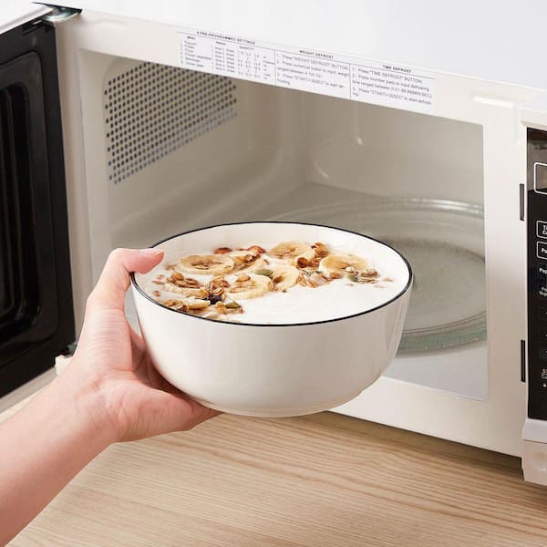 12-Piece White Color Black Rim Porcelain Dinnerware Set Service for 4 Tableware Service Set Bowls and Plates Set