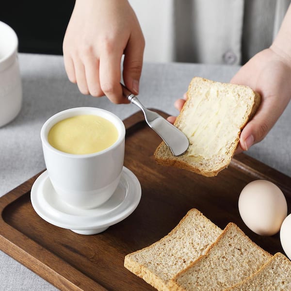 6 oz. White Porcelain French Butter Dish with Lid Butter Container Butter Keeper with Water Line