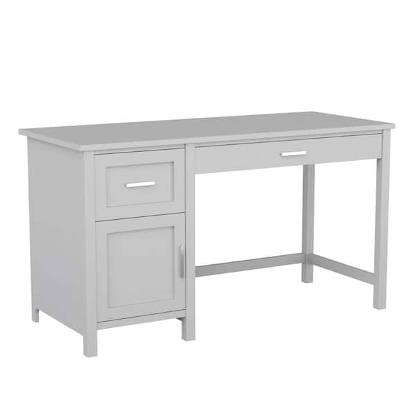 54 in. Rectangle Gray/Brushed Nickel Engineered Wood 2-Drawers Computer Desk