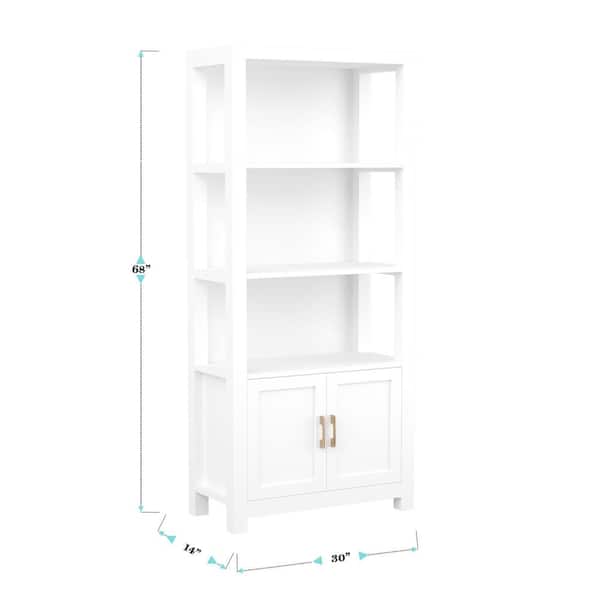 68 in. Tall White/Polished Brass Wood 4 Shelf Standard Bookcase with Storage