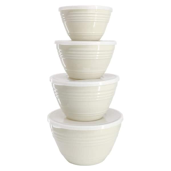 8-Piece Plastic Storage Bowl Set with Lids in Linen