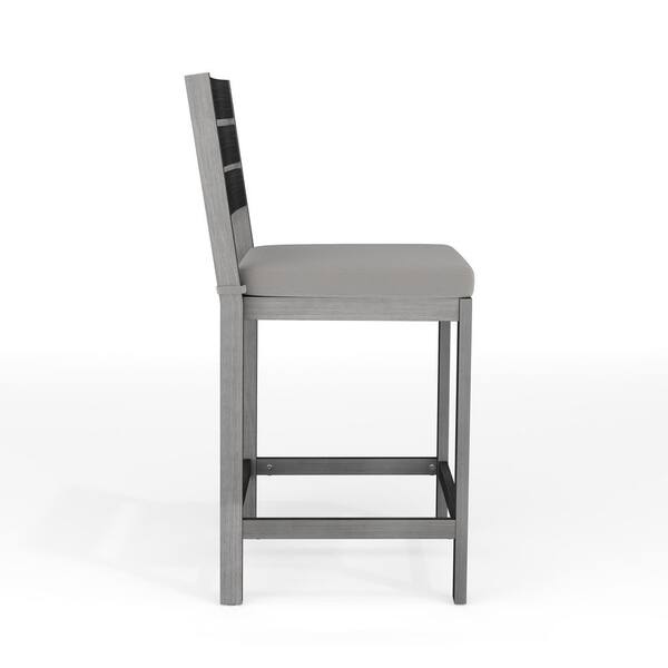 Bedford Aluminum Indoor-Outdoor Patio Bar Stools with Gray Brushed Woodgrain and Gray All-Weather Seat Cushions, 2-Pack