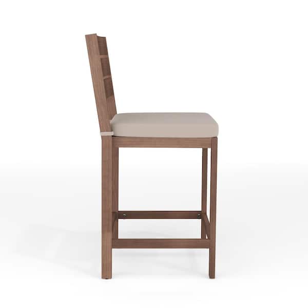 Bedford Aluminum Outdoor Patio Bar Stools with Brown Brushed Woodgrain and Cream All-Weather Seat Cushions, 2-Pack