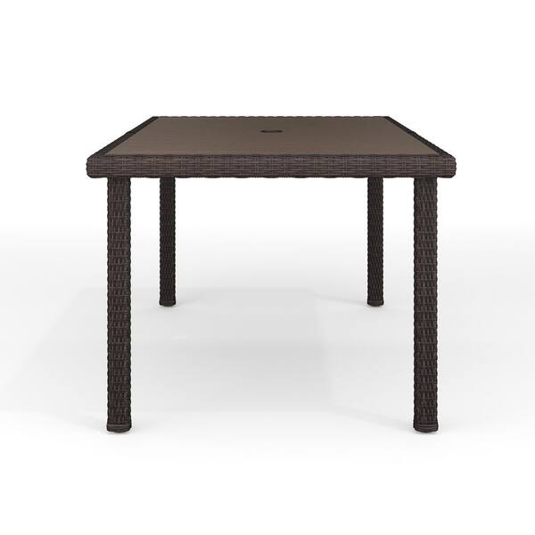 Bedford Brown Rattan Wicker 62 in. Indoor-Outdoor Patio Table with Engineered Wood Top