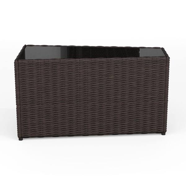 Bedford Brown Rattan Wicker Indoor-Outdoor Tapered Patio Side Table with Inset Tempered Glass Top