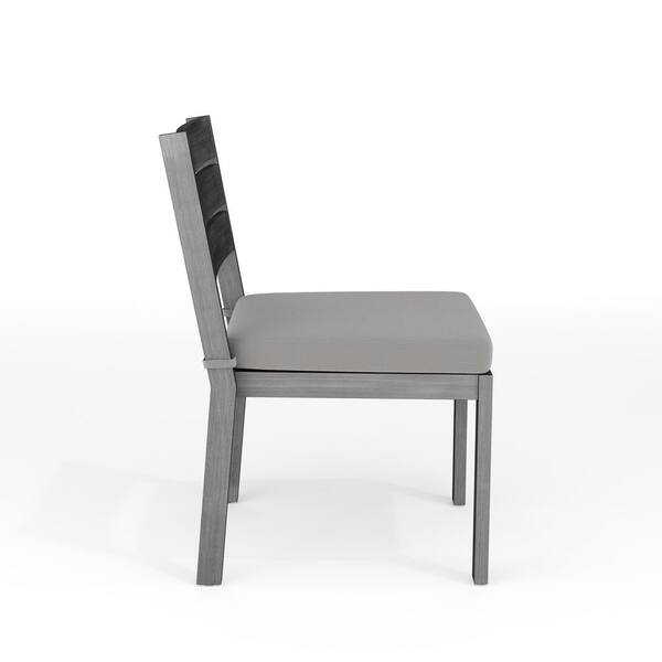 • Patio side dining chair with brushed woodgrain aluminum finish