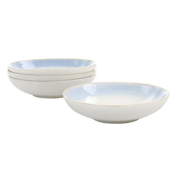 Blue Rim 4 Piece 20 fl. oz. 8.25 in. Round Stoneware Dinner Bowl Set in White