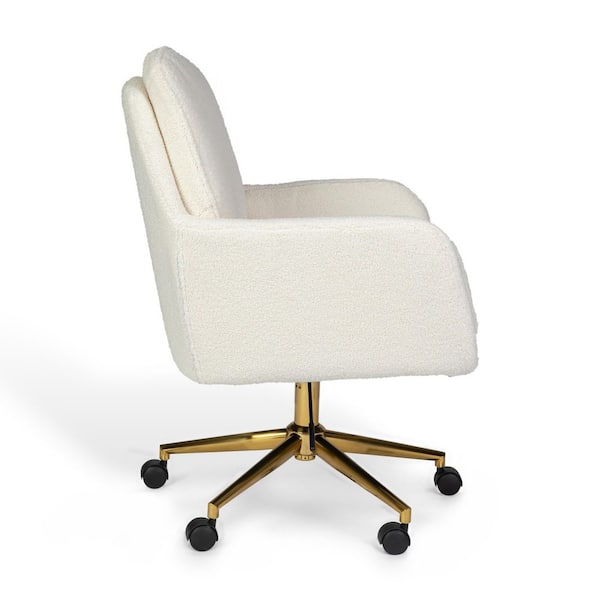 Clara Fabric Swivel Office Chair in Off White/Polished Brass with Arms