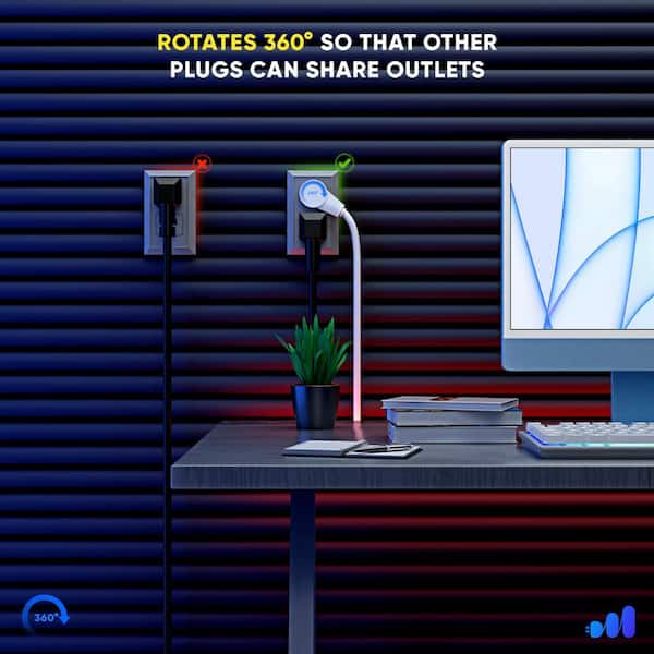 • 360 rotating flat plug prevents outlets from being blocked