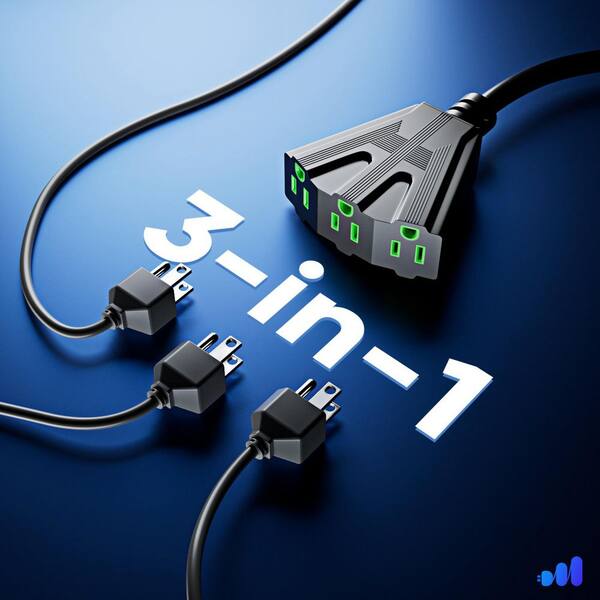 50 ft. 14 / 3 Medium / Heavy Duty Indoor V-Shaped Extension Cord 3-Outlet 15 Amps Black with Green Indicators