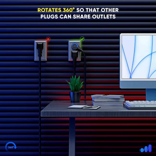 6 ft. 14/3 Medium/Heavy Duty Indoor Extension Cord with 360° Rotating Flat Plug, 15Amps, Black
