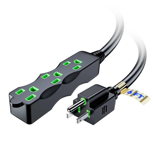 6 ft. 16 / 3 Light Duty Indoor I-Shaped Extension Cord, 3-Outlet, 13 Amps, Black with Green Indicators