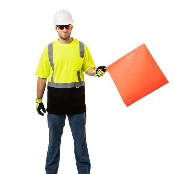 Men's Large Hi-Vis Black Short-Sleeve Safety Shirt