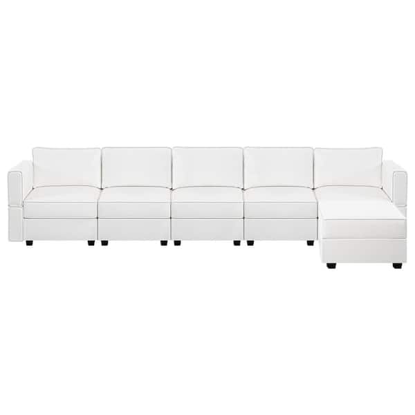 138.19 in. W Linen 5-Seater Living Room Modular Sectional Sofa with Ottoman for Streamlined Comfort in White